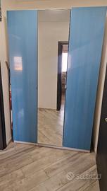 Armadio pax ikea 2 ante celesti e una anta centrale a specchio ottime condizioni, scaffali interni e sbarra inclusi. Misura 150 Lunghezza 60 Profondità 236 altezza. Smontaggio e trasporto a carico dell' acquirente