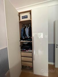 Vendo per esigenze di spazio questo armadio a 3 ante Ikea, con cassetti, cestoni e appendiabiti come in foto. Ritiro e montaggio a carico dell’acquirente.
