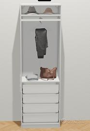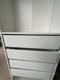 Vendo armadio bianco pax ikea 75x35x236 completo di accessori: 4 cassetti due ripiani bastone appendiabiti Accessori sono già smontati, sono stato appoggiati per fare foto