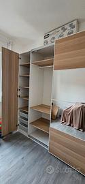 Due moduli da 75 cm con ante scorrevoli in rovere e specchi (i quadranti sono riposizionabili a piacere);