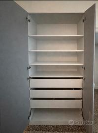 Vendo armadio pax ikea profondita 36cm con ante a specchio e relativi accessori interni come da foto. L’armadio è composto da 1 modulo da 100x236h e 1 modulo da 50x236. Attualmente l’armadio è montato solo nella struttura esterna +cassetti, ante e scaffali sono stati rimossi.