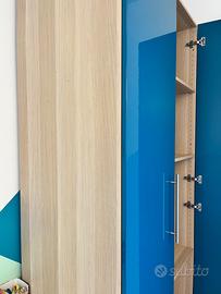 Vendesi 2 moduli Pax Ikea da 50cm di larghezza, altezza 236cm con ante lucide blu turchese e struttura effetto rovere con mordente bianco + ripiani interni del medesimo colore. Le condizioni sono come da foto. Sono presenti dei fori laterali in quanto fissato ad altri armadi in precedenza.