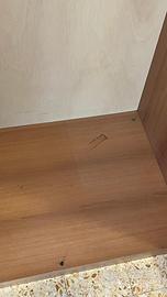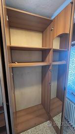 Vendesi armadio impiallacciato a quattro ante con due scomparti. Due ante provviste di specchio a figura. Misure: base 1,85 altezza 2,55 profondità 0,60. Due mensole appendiabiti ed altre quattro, tutte regolabili in altezza. Piccolo difetto alla base come da foto.