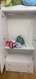 Offro un armadio funzionale e carino, ideale per la stanza dei bambini. Questo pratico armadio è dotato di *due ampie ante* e *due cassetti* che offrono ampio spazio per riporre vestiti, giocattoli e accessori. La sua struttura è robusta e sicura, progettata per durare nel tempo.