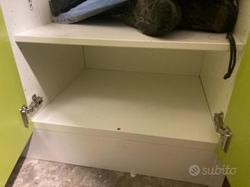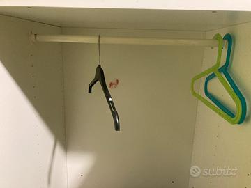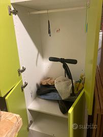 Vendo piccolo armadio per bambini Ikea dotato di antine, ripiano e bastone appendiabiti. Sul lato sinistro c’è una libreria. Il mobile è addossabile alla parte oppure puo essere messo lateralmente in quanto è dotato di parete di fondo finita. Dimensioni: altezza 150 cm, profondita: 50 cm, lunghezza: 100 cm. Zona Appio Latino dietro Villa fiorelli