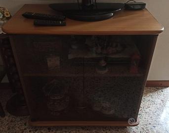 1 mobiletto con vetrina anni ’90, perfetto come porta TV o libreria