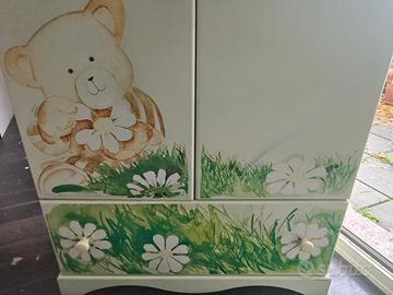 Vendo armadio per cameretta dai colori neutri e dalla linea sagomata, in ottime condizioni.