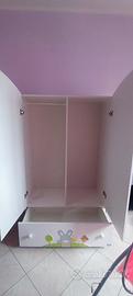 Vendo piccolo armadio per cameretta in perfette condizioni a due ante e due cassetti ( come da foto) Prezzo 100 euro. L' armadio verrà consegnato smontato.