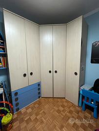 Un armadio 90 × 60 di profondità con quattro cassetti di colore azzurro
