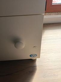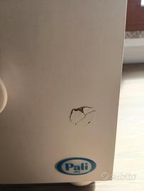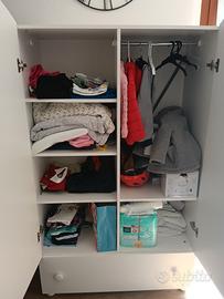 Armadio per neonati/bambini marca Pali colore bianco Doppia anta e cassettone Diviso in 2 parti internamente Una parte con una mensola e tubo per vestiti appesi L altra parte con 3 mensole e predisposizione per tubo per vestiti appesi Tutte le mensole sono removibili Misure armadio altezza 160 larghezza 100 profondità 52 UNICO DIFETTO, una crepa in basso a destra nel cassettone causa serraggio vite interna È necessario il ritiro di persona causa dimensioni l armadio verrà svuotato e pulito a ridosso del ritiro