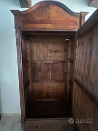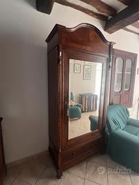 Armadio in buono stato in legno e specchiera, con palo per appendere i vestiti e cassettone