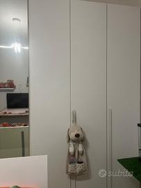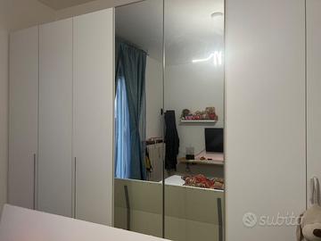 Armadio mondo convenienza bianco ,8 ante di cui due a specchio,all’interno ci sono due cassettiere e vari ripiani