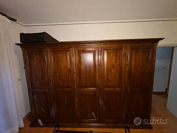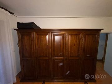 Vendo capiente armadio a 5 ante color marrone, ideale per camere da letto matrimoniali o ampie zone. Il mobile si presenta in buone condizioni estetiche e strutturali.