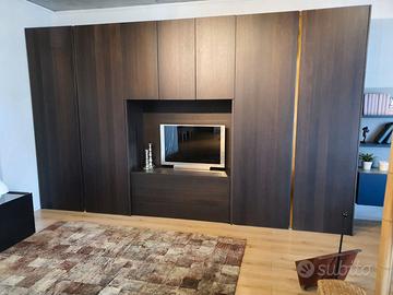 Armadio della PIANCA con vano tv e cassettiera a vista. Ante con gola verticale ottonata. PRODOTTO PRESENTE IN SHOW ROOM, CON CONSEGNA E MONTAGGIO GRATUITO IN NAPOLI