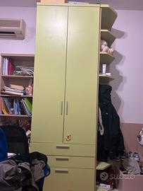 2 ante con cassettiera e ripiano interno piu libreria stondata con conodisdimo attaccapanni. Color Rovere Pistacchio. Pridotto divalta quslota. Doimo