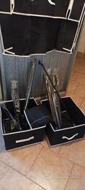 armadio in tela portatile, un'ottima soluzione salvaspazio e leggera per organizzare vestiti e accessori in camera da letto, lavanderia o durante un traslocho o viaggio. Struttura: Realizzato solitamente con un telaio inmetallo robustoe connettori in plastica per un montaggio semplice senza attrezzi. Rivestimento: Il materiale esterno è intessuto non tessuto (TNT), traspirante e resistente all'umidità, ideale per proteggere i capi dalla polvere. Condizioni:Nuovo. località Caltignaga ( Novara)