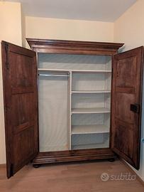 ARMADIO PIEMONTESE IN NOCE Fine '600 inizio '700 Restaurato e pronto all'uso Larghezza 162cm (base compresa) Altezza 230cm Profondità 56cm (50cm solo armadio) COMPLETAMENTE SMONTABILE Solo ritiro in zona a Medolla(MO)