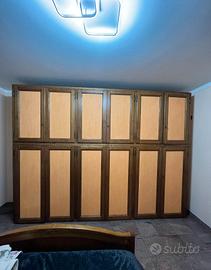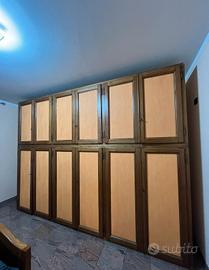 Vendo armadio per rinnovamento arredamento. Completamente in legno, no truciolato. Fatto da falegname, in origine era montato a filo muro, fatto su misura per occupare un'intera parete.