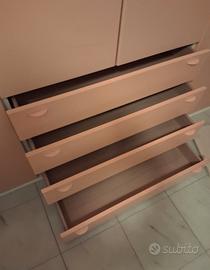 Comò colore arancio/panna con 5 cassetti, il primo più piccolo