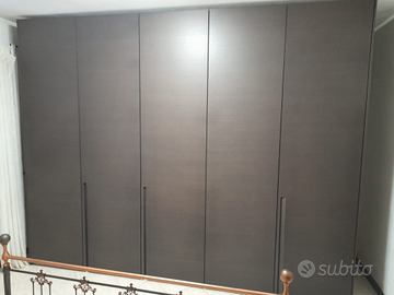 Vero affare!!!Vendo, causa trasferimento, armadio Poliform colore marrone wenge', doppia anta con appeso lungo e anta centrale con cassettiera e ripiani in cristallo per piegato. Ottimo stato, misure:cm 324,5 x 259 H x 61,4 P. circa. Smontaggio e trasporto a carico dell'acquirente.