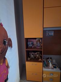 Armadio ponte con boiserie color arancio/giallo e noce