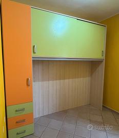 armadio a ponte con cassettiera,ante scorrevoli, altezza 2.45, larghezza 2.51, profondità 54.