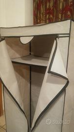 Armadio porta vestiti in tessuto non tessuto richiudibile. Colore grigio bordato di nero. Dimensioni: altezza cm. 150, larghezza cm. 75, profondità cm. 50. Usato ma in ottime condizioni. Per chi ne avesse necessità ne ho due pezzi. € 20,00 cadauno. Spedizione a carico dell'acquirente. Patrizio 3382234481