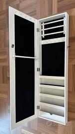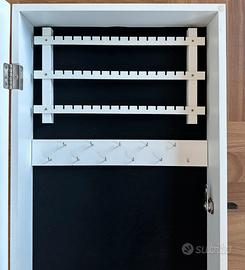 Armadietto porta gioielli da parete con specchio e serratura, Composto da diversi scomparti, porta oggetti (anelli collane, orecchini) grande capacità Dimensioni approssimate 40x110 cm Colore bianco