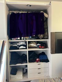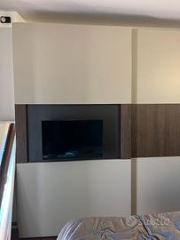 Armadio acquistato neanche un mese fa, vendo per un errore di misure da parte del progettista del negozio dove lo abbiamo comprato (Hartè Arredamenti): purtroppo è troppo grande rispetto alla stanza in cui si trova e la rende poco vivibile. Descrizione: Armadio di Hartè comprensivo di attrezzatura interna come da foto. Finitura Tortora laccato opaco e rovere fiammato con interni frassino cenere. Armadio tamburato scorrevole L278.5 x H257 x P71 anta esterna/ P66 anta interna. Anta scorrevole con porta tv.