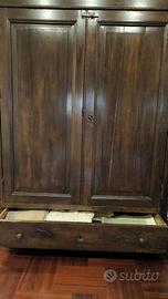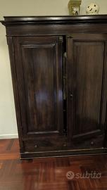 Vendo armadio con doppia anta e cassettone, primi '900, ottime condizioni. Fatto eseguire anche trattamento antitarma a microonde alla Zucchet. Al momento è all'estito internamente come appendiabiti, ma abbiamo fatto fare a misura in legno massello 3 ripiani per adibirlo all'occorrenza come credenza.