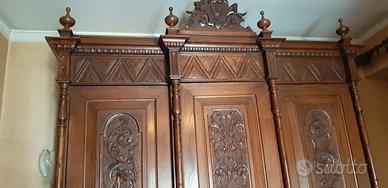 Armadio primi dell'800 lombardo a tre ante interamente intarsiato in castagno. Altezza 295 cm per 210 cm. di lunghezza e 70cm. profondità. Prezzo non trattabile. Già completamente smontato. Zona eur/S.Paolo