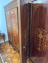 Armadio in legno massello intarsiato stile luigi