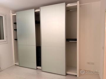 armadio tre ante scorrevoli in vetro satinato larghezza mt.3,10 altezza mt.2,60 profondità mt.0,68