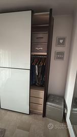 All’interno cassettiera 3 cassetti,4 tubi appendi abiti.
