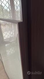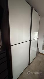 Armadio a due ante in vetro bianco,e struttura color marrone Wengè