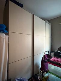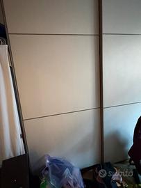 Vendo armadio Mondo Convenienza a 3 ante scorrevoli, colore chiaro con profili effetto legno scuro.