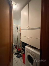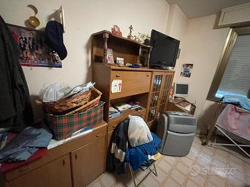 Armadio grande a muro in legno, su misura, caratterizzato da numerose ante e uno scomparto a giorno con ripiani e cassetti. Offre un'ampia capacità di archiviazione per vestiti o oggetti vari. Lo scomparto aperto sulla sinistra è utile per libri o oggetti decorativi. Il design funzionale permette di sfruttare al massimo lo spazio disponibile. in regalo il resto come da foto. Zona Centocelle.