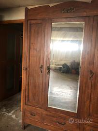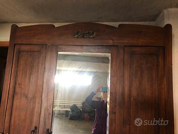 Vendo armadio in legno massello di noce stile vintage, caratterizzato da tre ante di cui una a specchio e tre cassetti sulla base, risalente ai primi del ‘900 Da restaurare Misure: 220x48x160