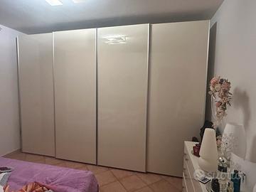 Vendo Armadio scorrevole 4 ante laccato bianco lucido. In due ante vi sono 3 cassetti. Lunghezza totale 3 metri e 70 centimetri altezza 2 metri e 59 centimetri profondita 90 centimetri.