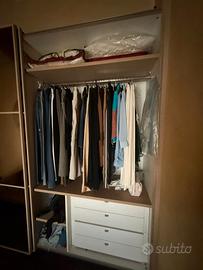 Molto capiente e funzionale: all’interno dispone di barre appendiabiti, ripiani e cassetti integrati, perfetti per organizzare abiti e biancheria.