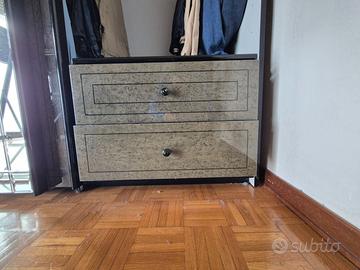 Vendo ARMADIO SCORREVOLE con specchio da camera da letto. Attenzione la parete interna come da foto presenta un foto. Regole due CASSETTIERE come da foto. Le misure: 252 cmaltezza - 276 cm larghezza - profondità massima 64 cm. Richiesto Smontaggio a carico dell acquirente.