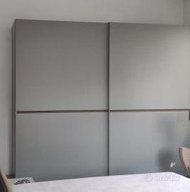 Vendo armadio a due ante scorrevoli Horizontal di Sangiacomo dimensioni in cm 302,5x62,8 - 255 h rovere laccato opaco col. creta con particolare col. fango, illuminazione interna al led, struttura interna in olmo scuro con colonna a 6 ripiani e 4 appendiabiti. Da esposizione. imballato e imbancalato pronto per il ritiro a carico e a cura dell'acquirente.