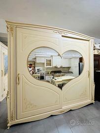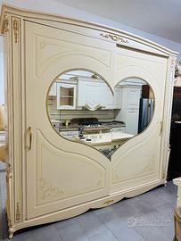Bellissimo armadio scorrevole modello CUORE NUOVO INTERAMENTE IN LEGNO TAMBURATO arricchito da strass laterali e centrali 1.600 euro compreso di trasporto e montaggio
