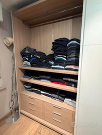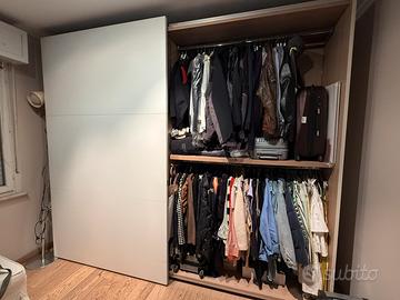 Armadio scorrevole moderno – 3 metri x 2,5 metri Vendo elegante armadio a due ante scorrevoli, dimensioni 3 metri di lunghezza x 2,5 metri di altezza, in ottime condizioni. Interno in finitura legno chiaro, molto capiente e ben organizzato con: •Ripiani e cassetti spaziosi •Due barre appendiabiti (una superiore e una inferiore) •Ampio spazio per piegati, valigie e accessori Ante esterne in color bianco opaco con texture spazzolata, dal design moderno e minimal. L’armadio è solido, funzionale e adatto sia a camere da letto che a cabine armadio. 👉 Misure: 300 cm (lunghezza) x 250 cm (altezza) x circa 65 cm (profondità) 👉 Condizioni: ottime, come nuovo 👉 Smontaggio e trasporto a carico dell’acquirente Prezzo trattabile.