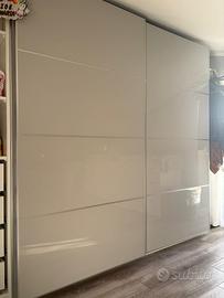 lungo 2 metri profondo 36 colore ante grigio chiaro. Completo di accessori interni di cui 4 bastoni appendiabiti e ripiani