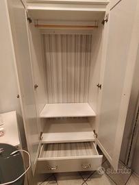 Armadio tipo IKEA modello TYSSEDAL colore bianco in stile tradizionale/shabby chic e due ampie ante a specchio. Include un bastone appendiabiti robusto ed un comodo cassetto inferiore con chiusura armonizzata. La parte superiore presenta una scanalatura decorativa ove è possibile appendere le grucce. Disponibile manuale di montaggio. Dimensioni Larghezza 88cm - Profondità 58cm - Altezza dal pavimento 208cm. Smontaggio e trasporto a carico di chi la ritira. Ritiro a Zola Predosa (BO). SOLO CONTATTI WHATSAPP AL 3317868345