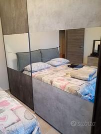 Vendita armadio grigio a vetro, con porte scorrevoli. Dimensioni: profondo 58 cm circa, largo 2 metri e 40 cm circa, alto 2 metri e 38 cm circa.