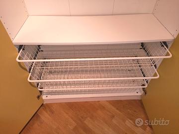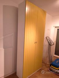 armadio slim IKEA con 2 ante di colore giallo due ripiani tre cassetti e due bastoni estraibili.. l'armadio si presenta in buone condizioni anche se le mensole interne sono un po' ovalizzate. dimensioni: