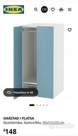 Armadio Ikea in ottime condizioni usato pochissimo Colore azzurro acceso e bianco Con bastone per appendere i vestiti e due ripiani