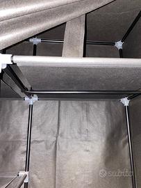 Armadio smontabile 150 x 45 x 175 cm con paletti modulari in metallo e tela anti polvere.